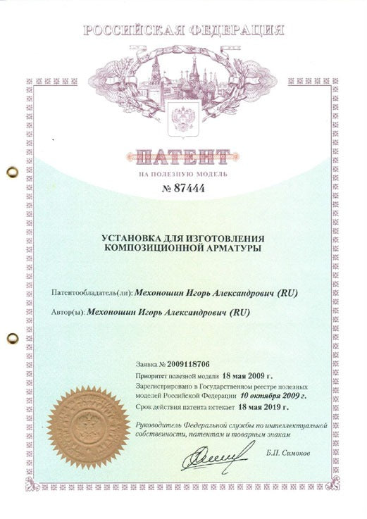 Brevet (2009) pour renfort composite comprimé