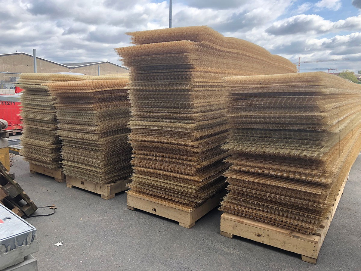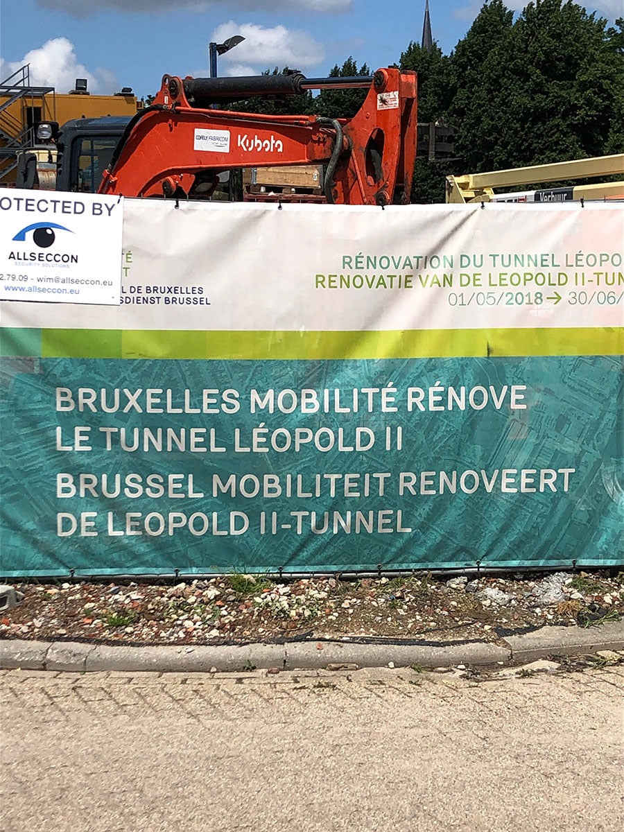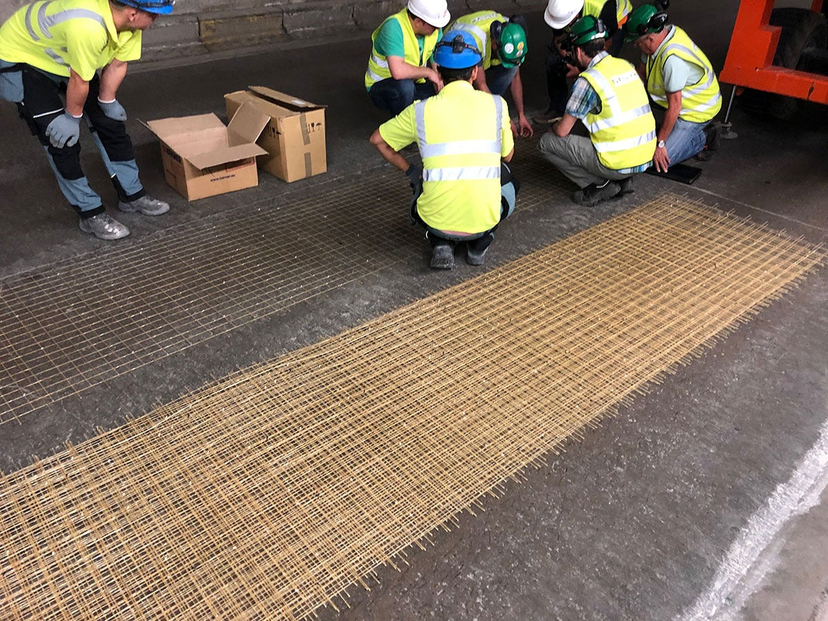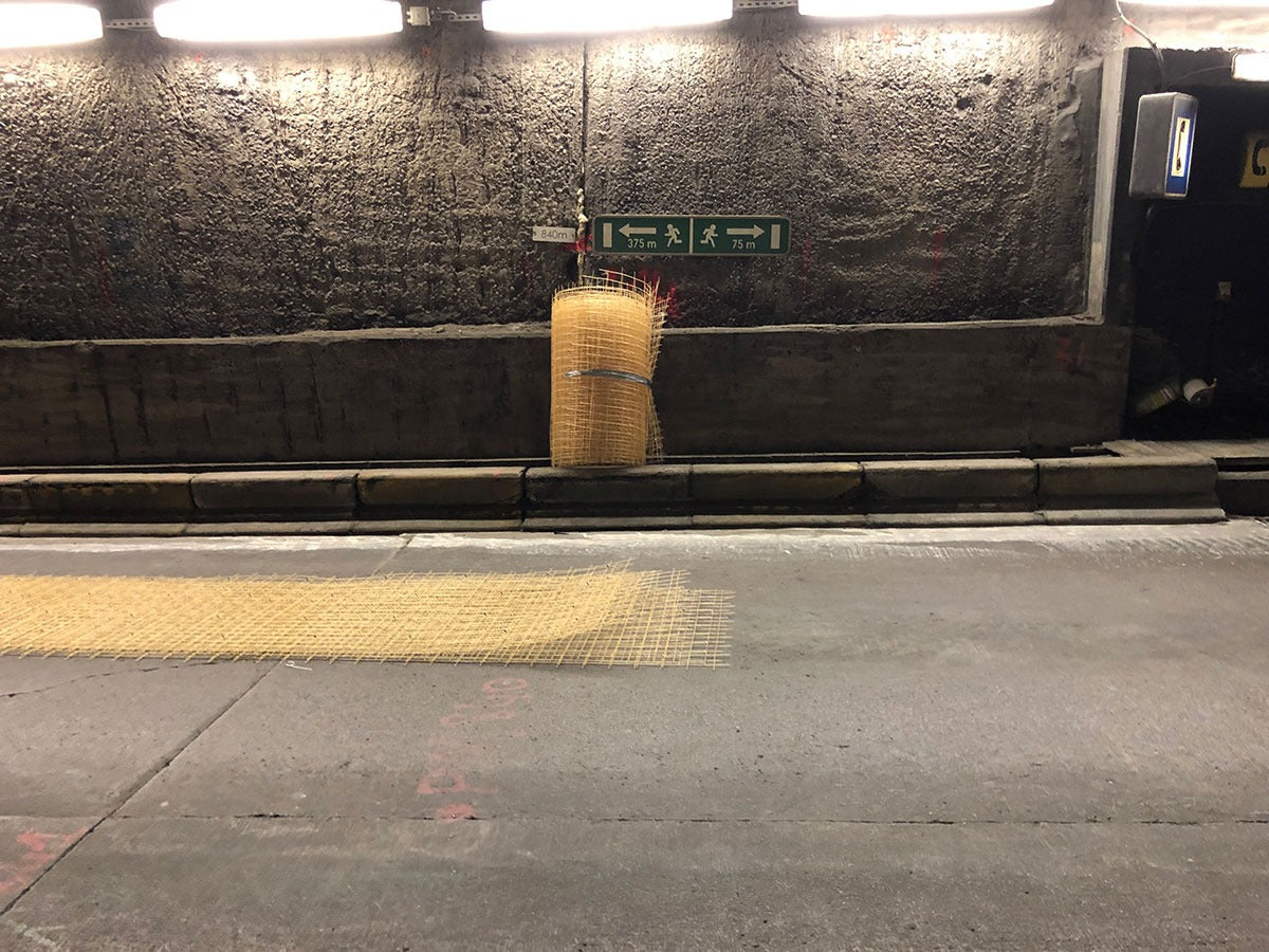 Voor het bekleden van het plafond van een tunnel in Brussel is gekozen voor Glasvezelwapening. In eerste instantie werd oude, loshangende beton verwijderd en vervolgens weer opgevuld met mortel. Daarna werd het plafon bekleed met Glasvezelwapeningsnetten. Doormiddel van beugeltjes werden deze netten bevestigd aan het plafon. Met spuit beton is de tunnel voorzien van een nieuwe laag beton.
