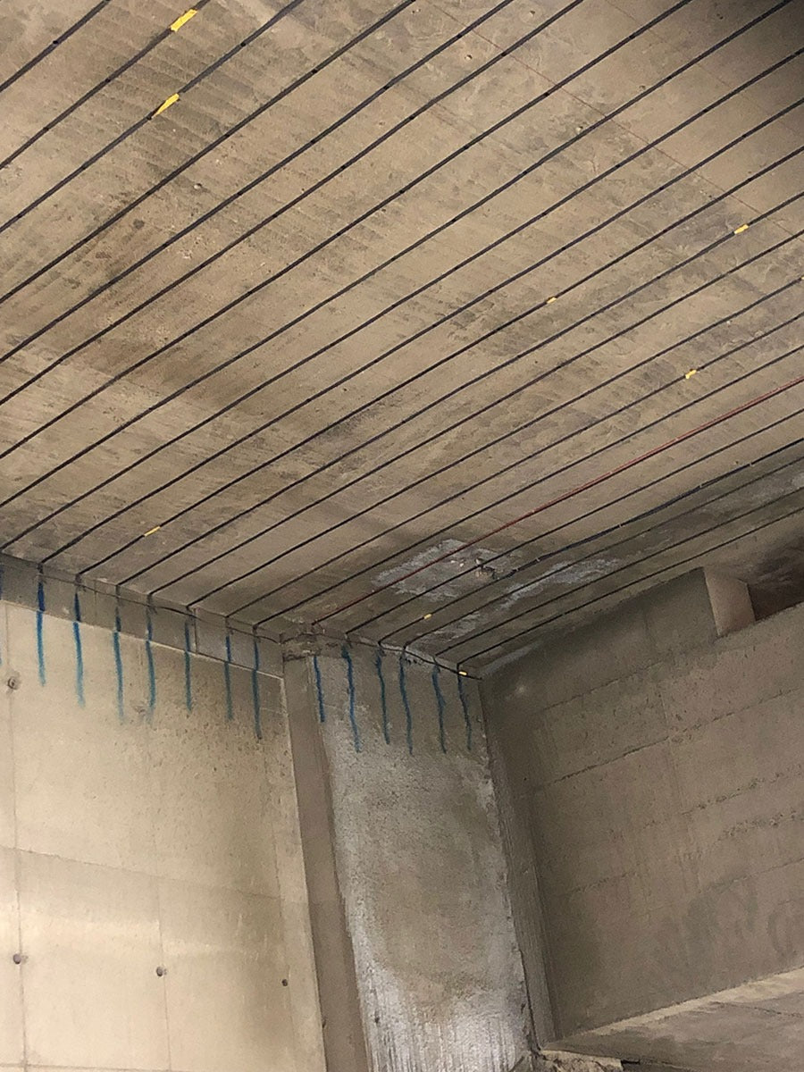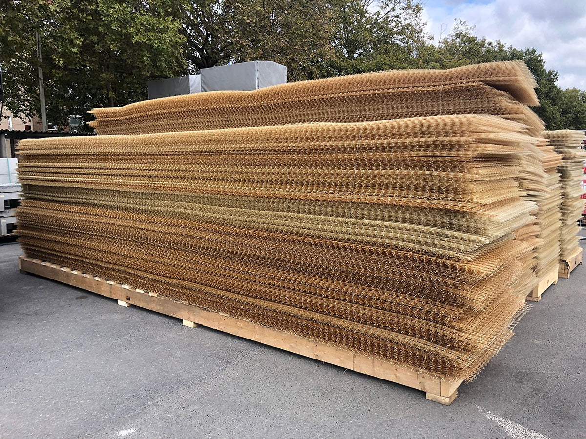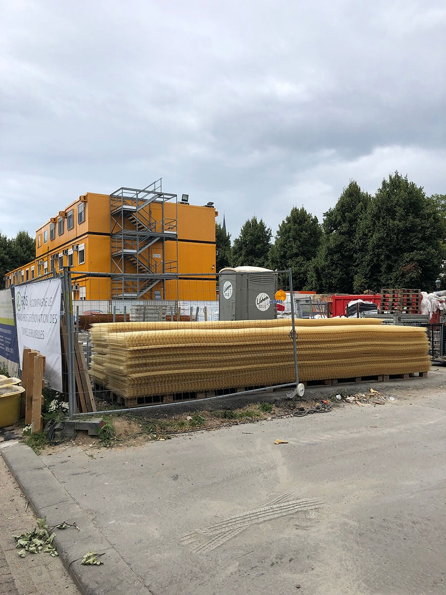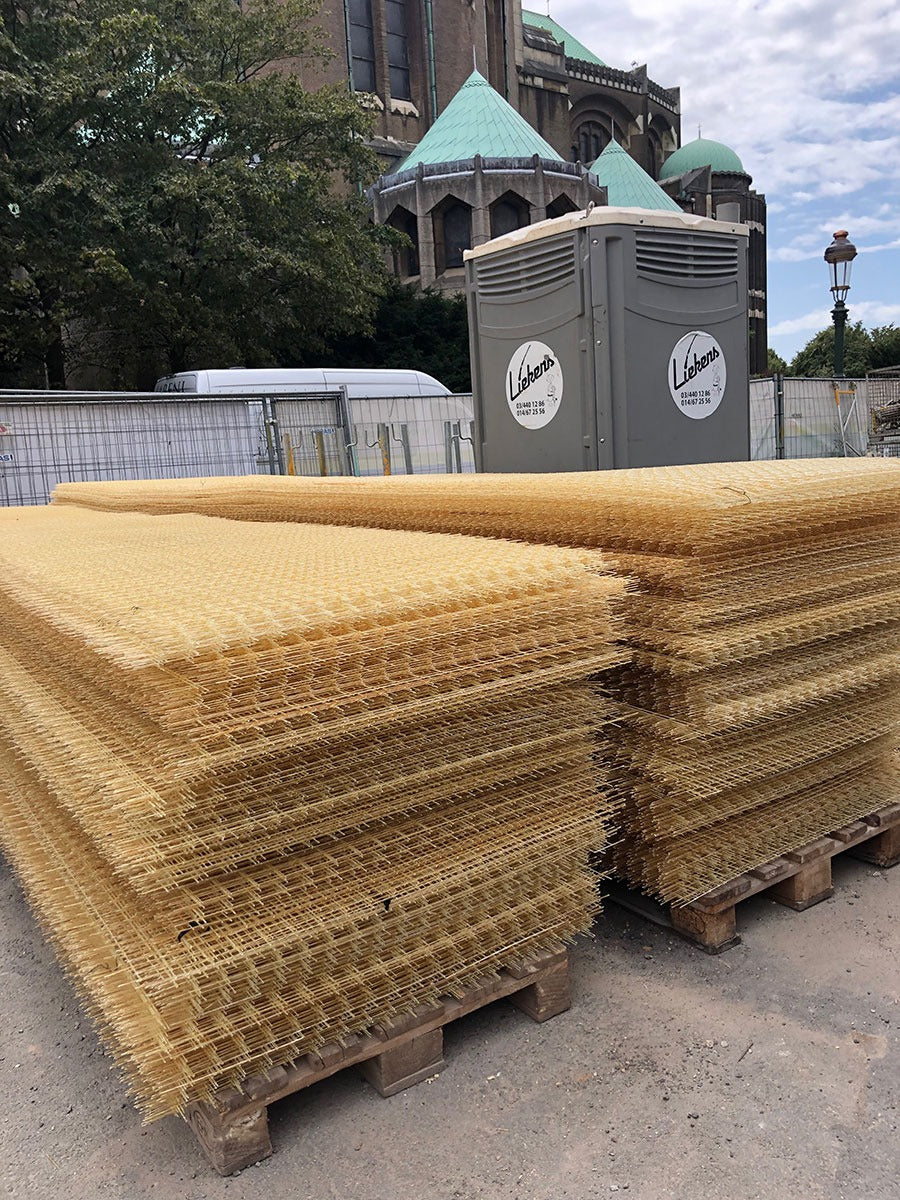 Voor het bekleden van het plafond van een tunnel in Brussel is gekozen voor Glasvezelwapening. In eerste instantie werd oude, loshangende beton verwijderd en vervolgens weer opgevuld met mortel. Daarna werd het plafon bekleed met Glasvezelwapeningsnetten. Doormiddel van beugeltjes werden deze netten bevestigd aan het plafon. Met spuit beton is de tunnel voorzien van een nieuwe laag beton.